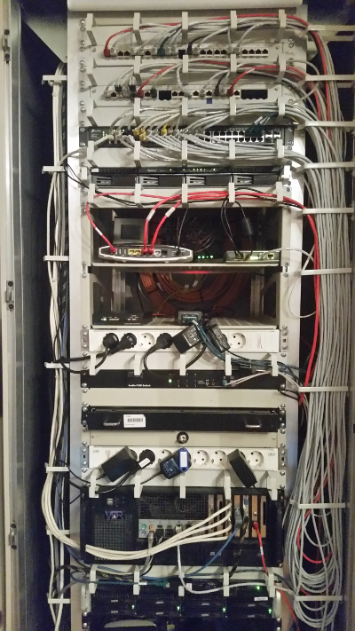 Zum Auslesen der Davis Vantage Pro II wird ein Linux-Server verwendet. Neben dem Auslesen der aktuellen Wetterdaten und Programmieren der Wetterstationskonsole, werden auf dem Server (gsanz unten auf dem Bild), die Wetterdaten in einer MySQL-Datenbank archiviert. Ferner erfolgt mit Hilfe von wview die Aufbereitung der Daten für die Wetterwebseite. Die Wetterseiten werden über den hauseigenen Apache-Webserver publiziert. Seit Oktober 2018 kommst für die Darstellung der Daten das CMS Dokuwiki zu Einsatz, nicht zu letzt wegen der einfachen Möglichkeiten der Aktualisierung der Seiten durch externe shell-Schripte und der Responsive Webdisign-Möglichkeiten, die das CMS bereitstellt.
